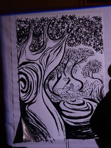 Cette discussion, enregistrée avec un son un rien approximatif, prenait place entre deux sessions de performances graphiques durant lesquelles les dessinatrices & dessinateurs invité.e.s reprenaient en une heure et en grand format les couvertures de leurs camarades. Quelques exemples ci-dessous :