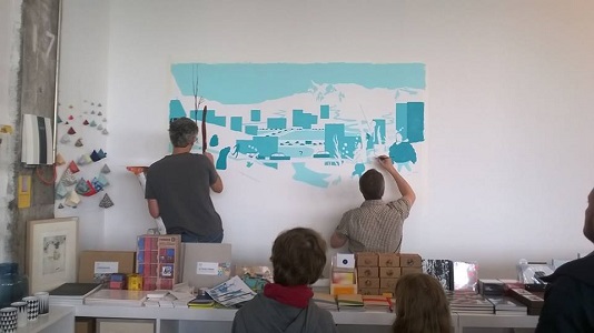 La fresque de la librairie de la Hab Galerie sera continuée par deux binômes de dessinateurs ces prochaines semaines : Julia Wauters & Karine Bernadou le samedi 31 octobre dès 15h puis Benjamin Adam & Vincent Sorel le samedi 14 novembre dès 15h également.